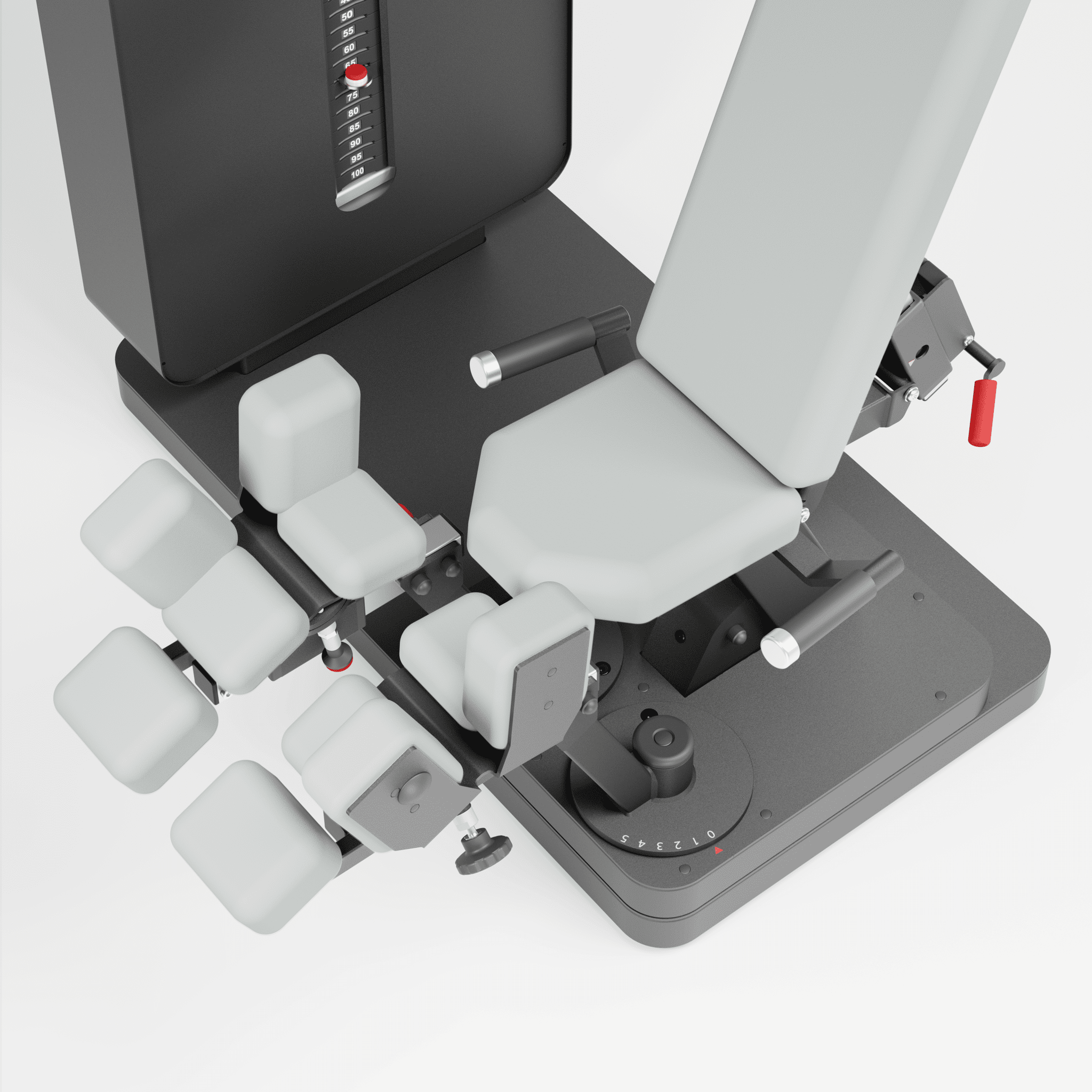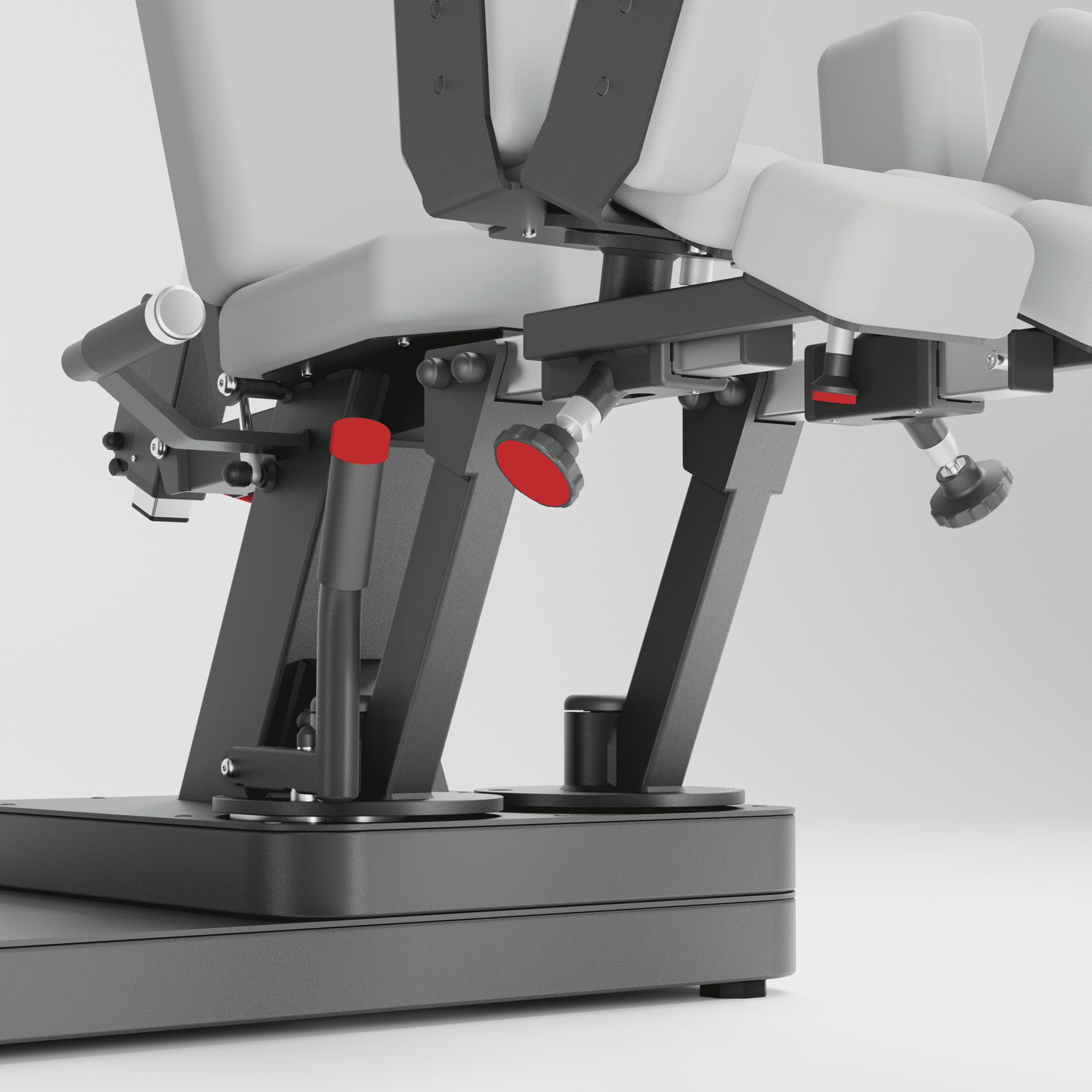 Für maximalen Bedienkomfort sorgt die intuitiv bedienbare Einknopfmechanik, mit der sich die Beinauflagen mühelos zwischen Adduktions- und Abduktionsstellung umstellen lassen.