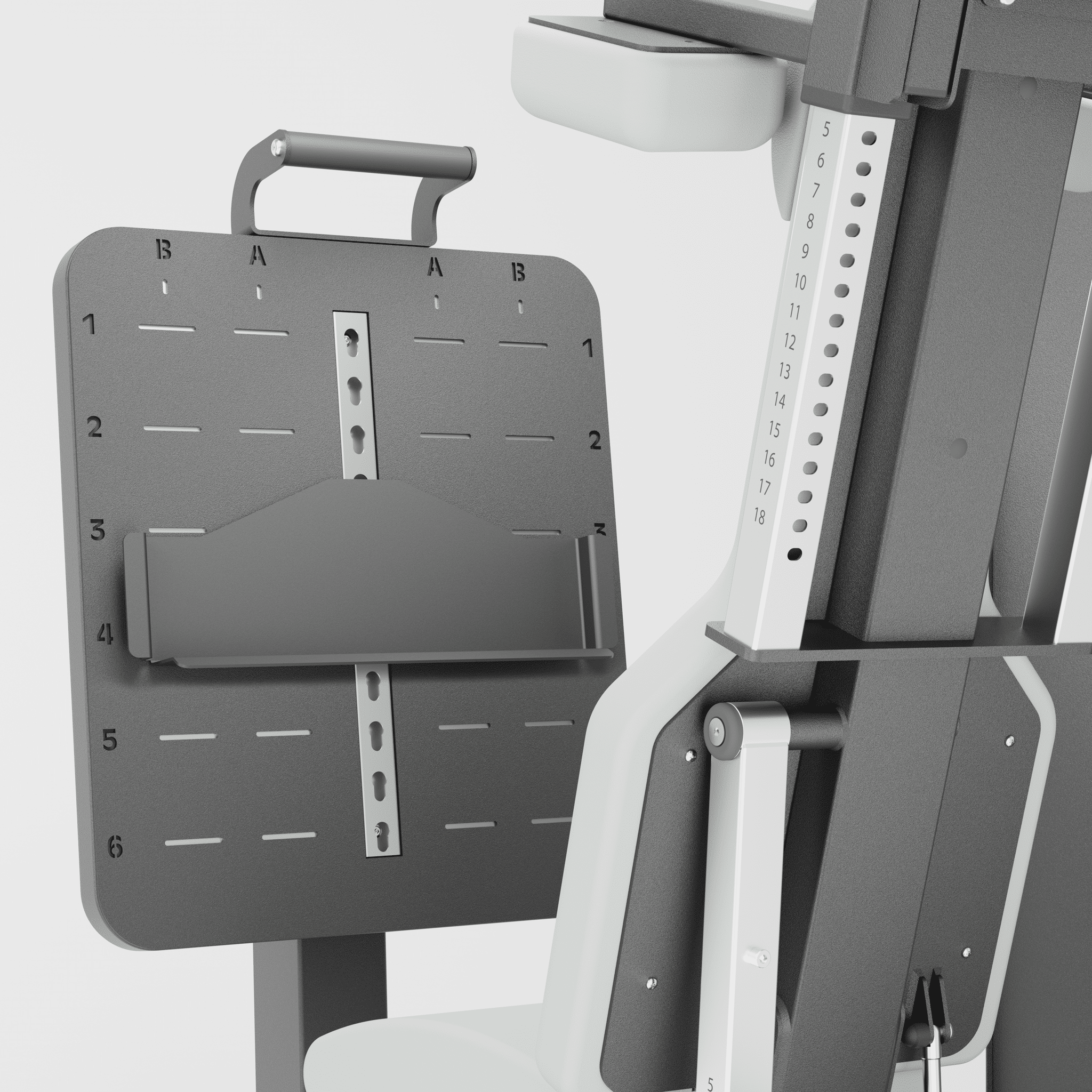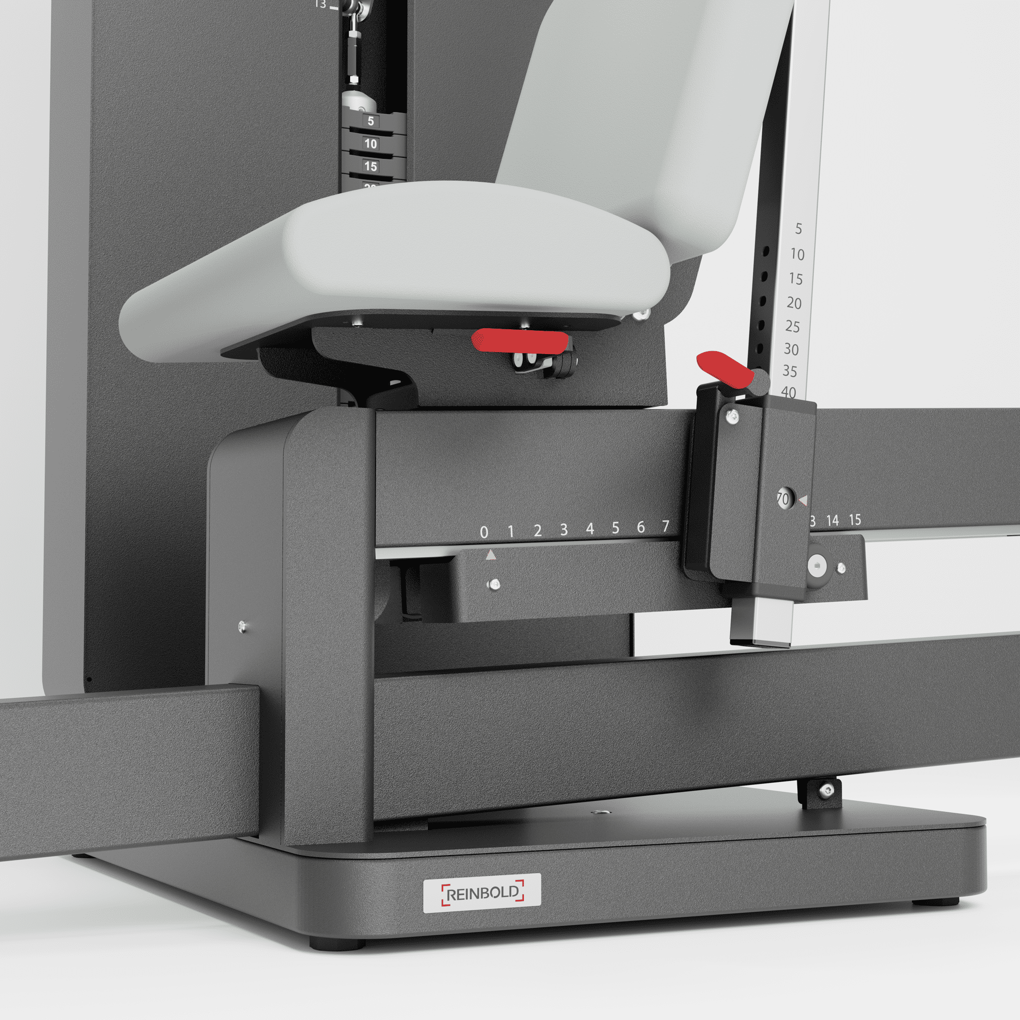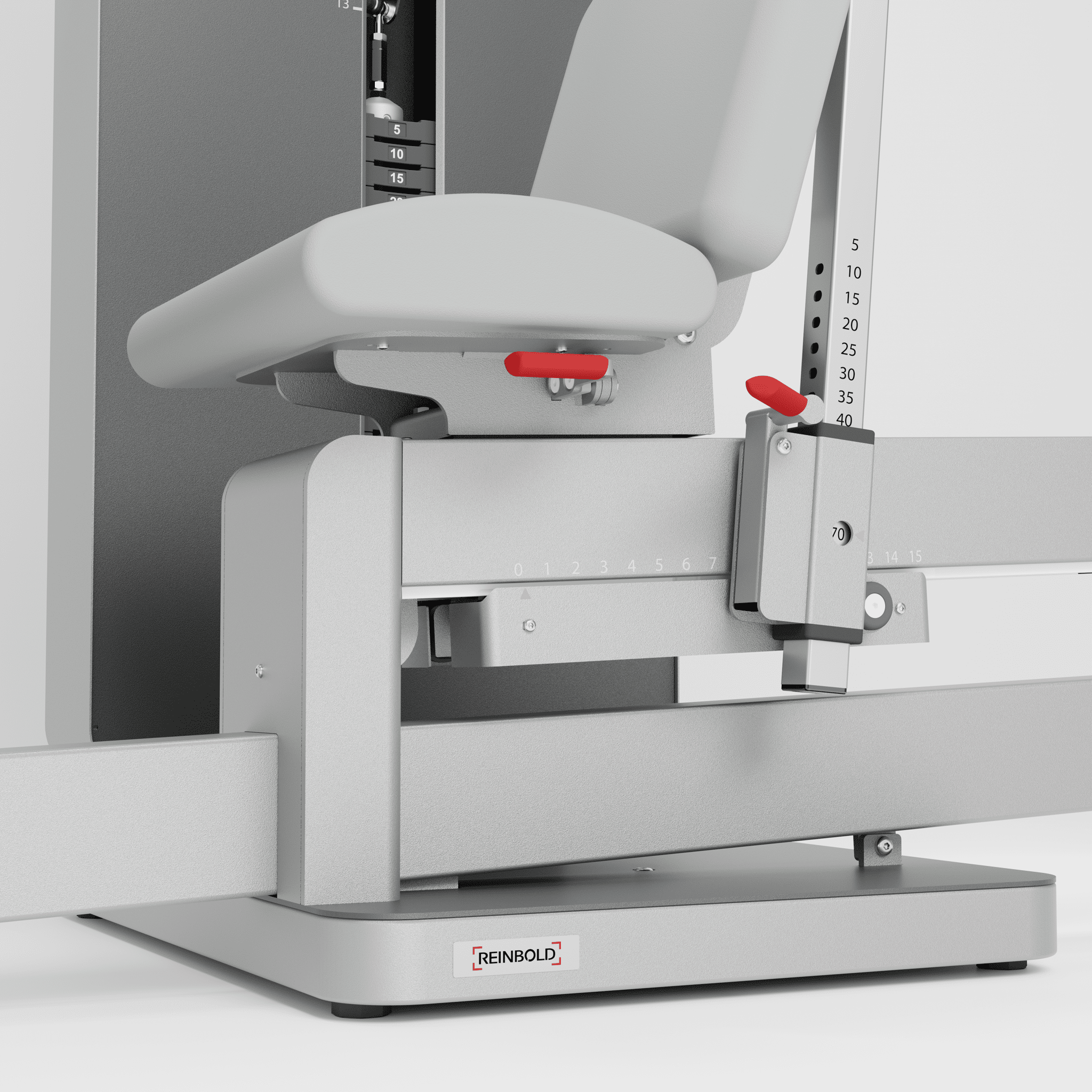Die benutzerfreundliche Verstellmechanik sowie ergonomisch platzierte Haltegriffe erleichtern den Ein- und Ausstieg und gewährleisten eine sichere Handhabung im Trainings- oder Therapieverlauf.