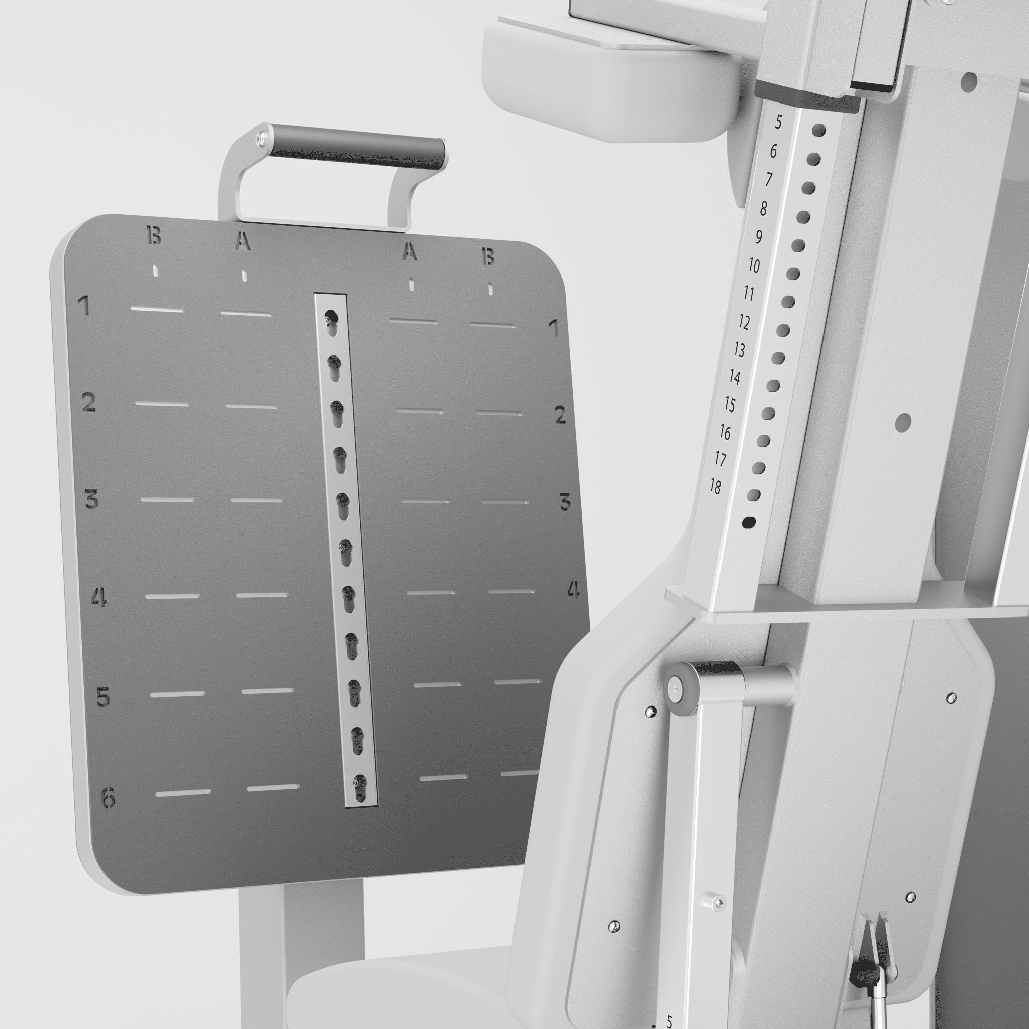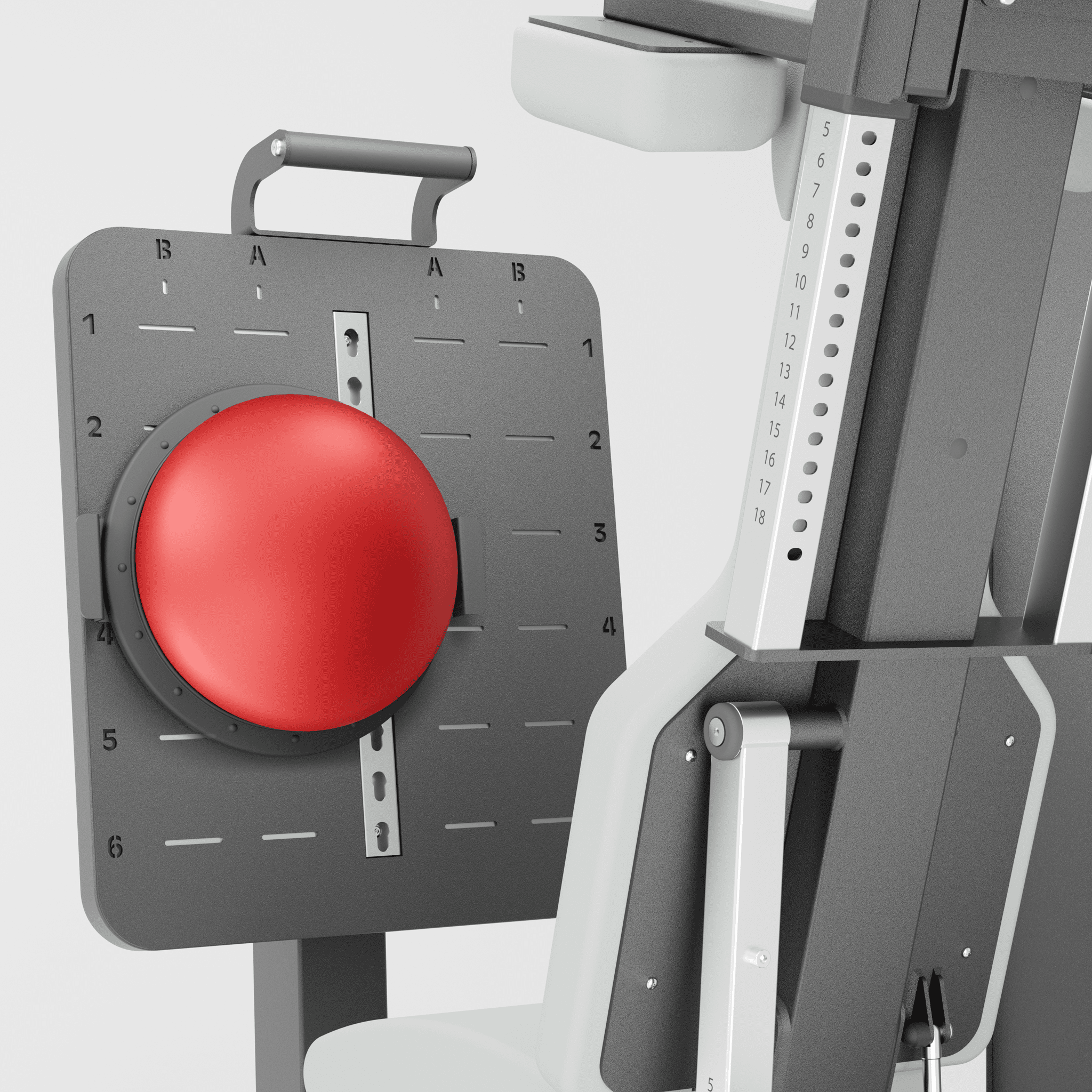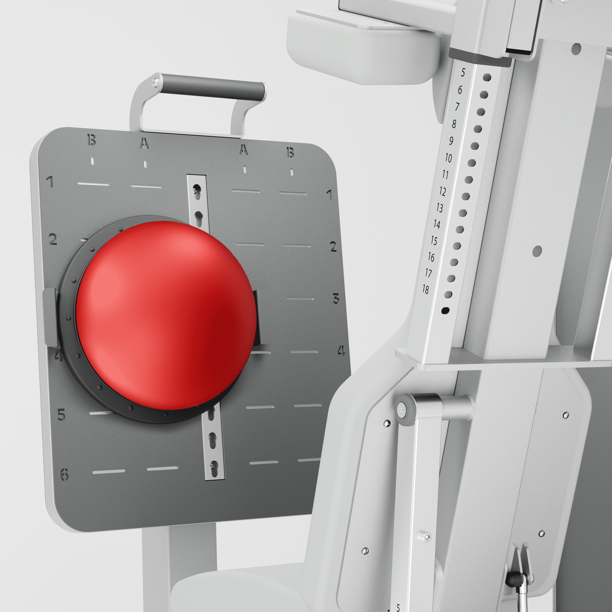Ein integriertes Koordinatensystem an der Fußplatte unterstützt die exakte Positionierung und Reproduzierbarkeit der Übungsausführung.
