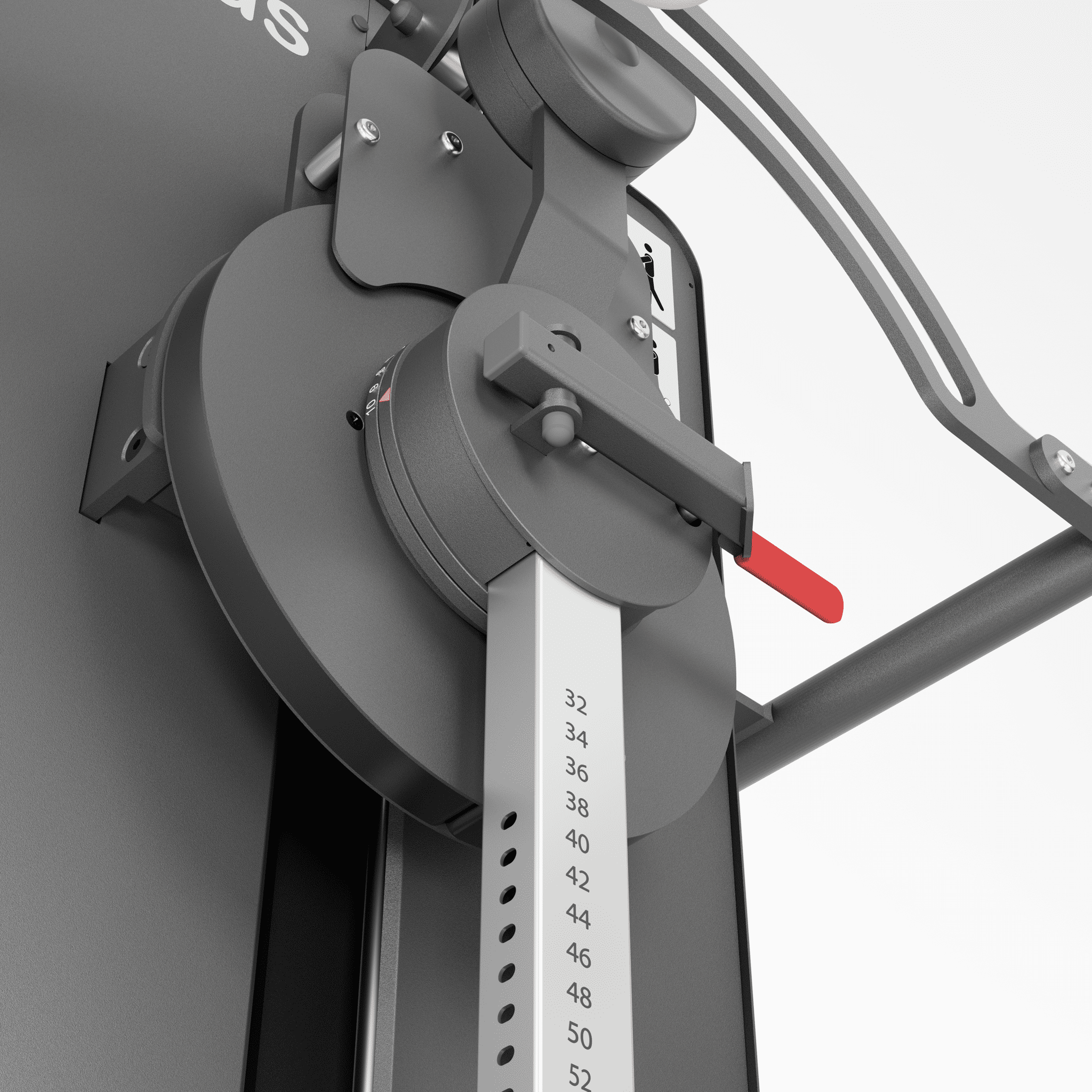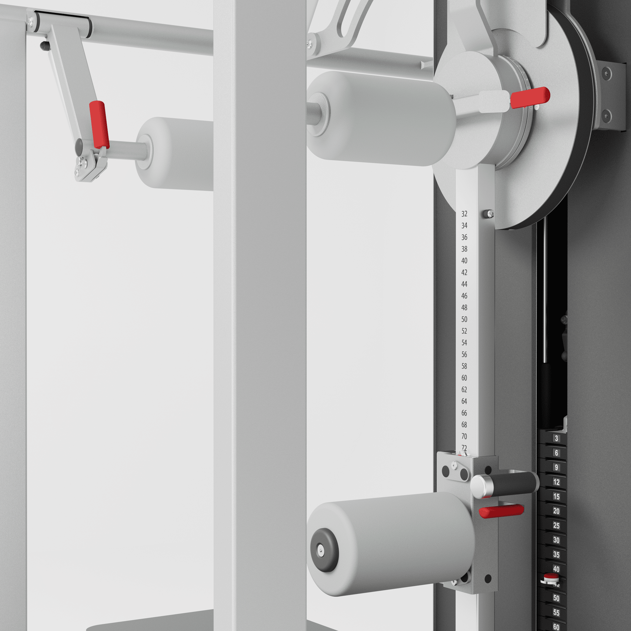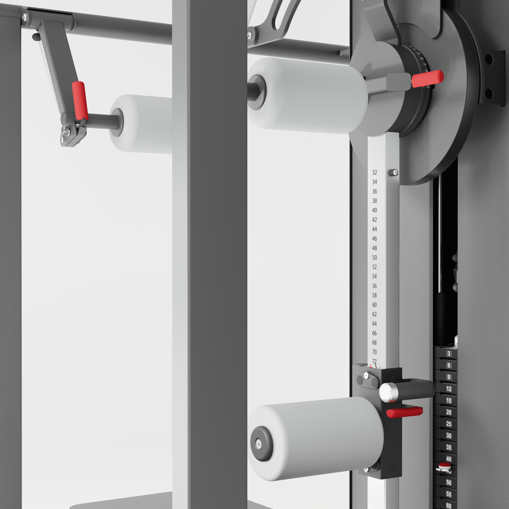 - Optional: Bewegungsbegrenzer & Gewichtsplattendämpfung
